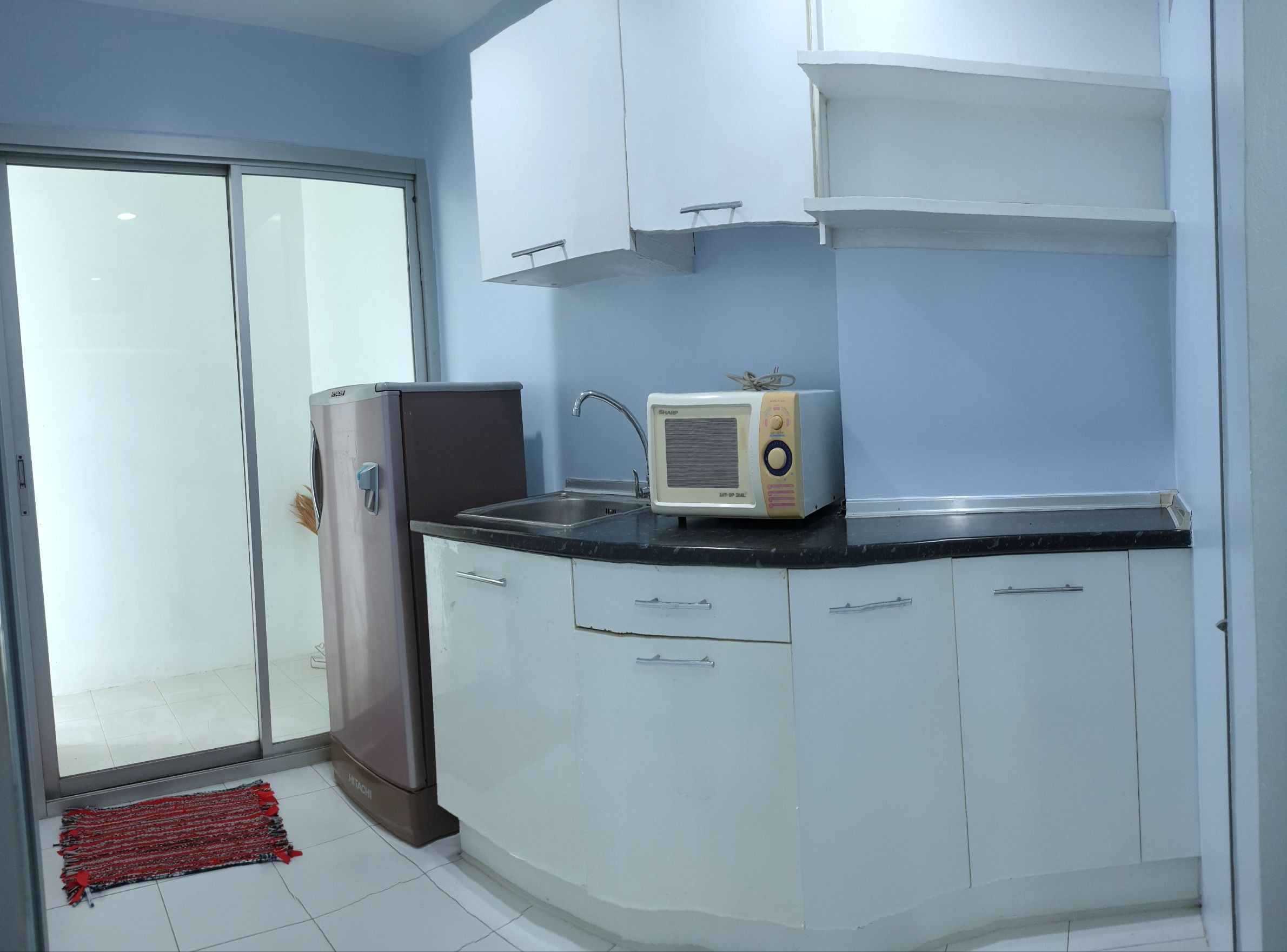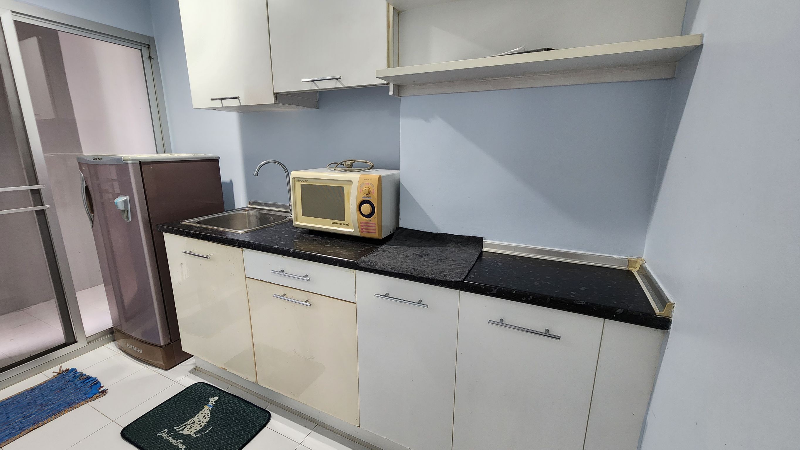 เคาน์เตอร์ครัว พร้อมไมโครเวฟ และตู้เย็น